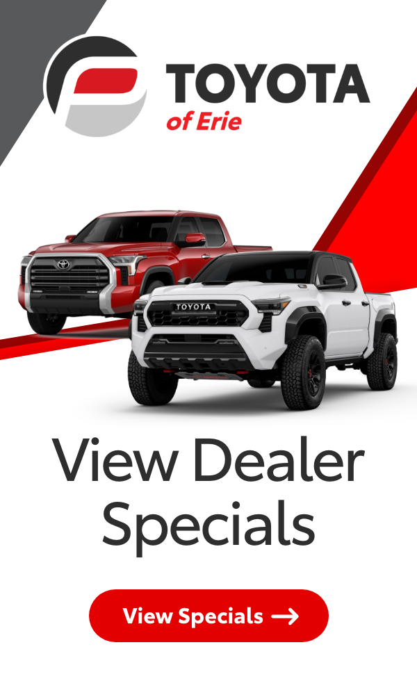 At Toyota of Erie, our knowledgeable team supports you through every step of buying or leasing your vehicle. From exploring the different models to arranging financing or trade-ins, we're here to help you find the right Toyota with the features that matter most to you.